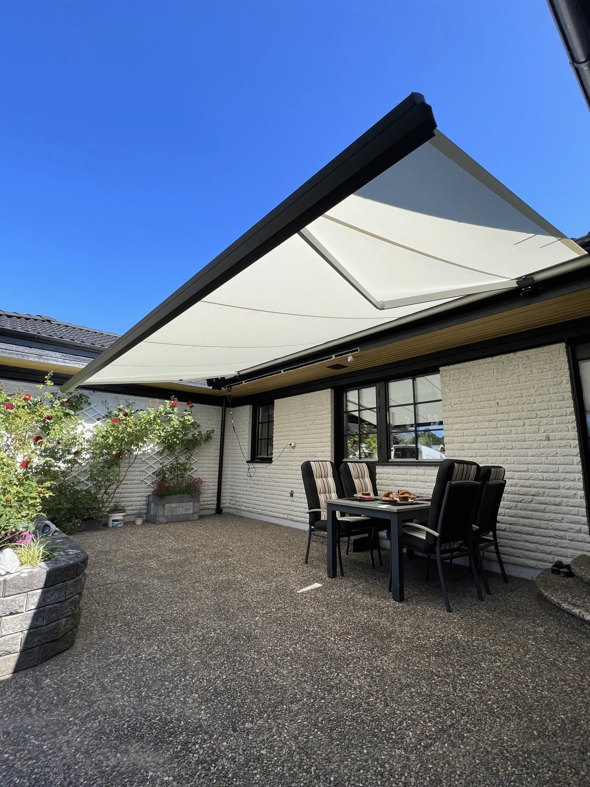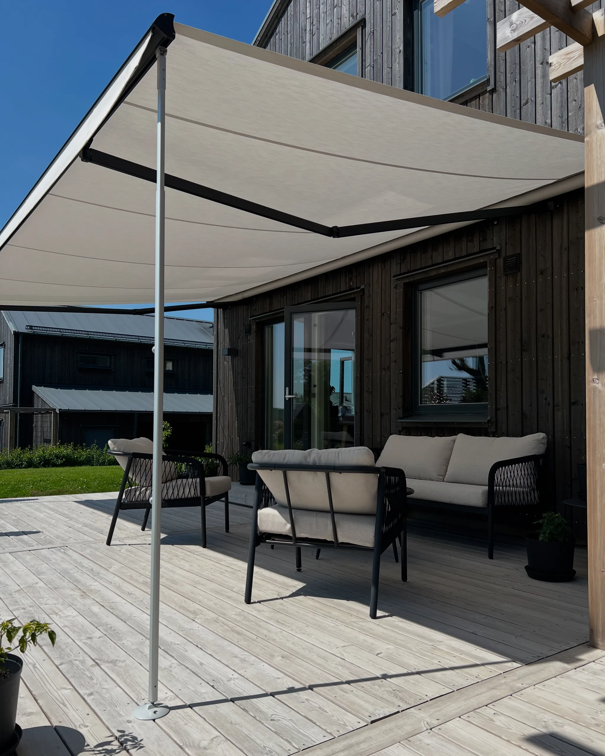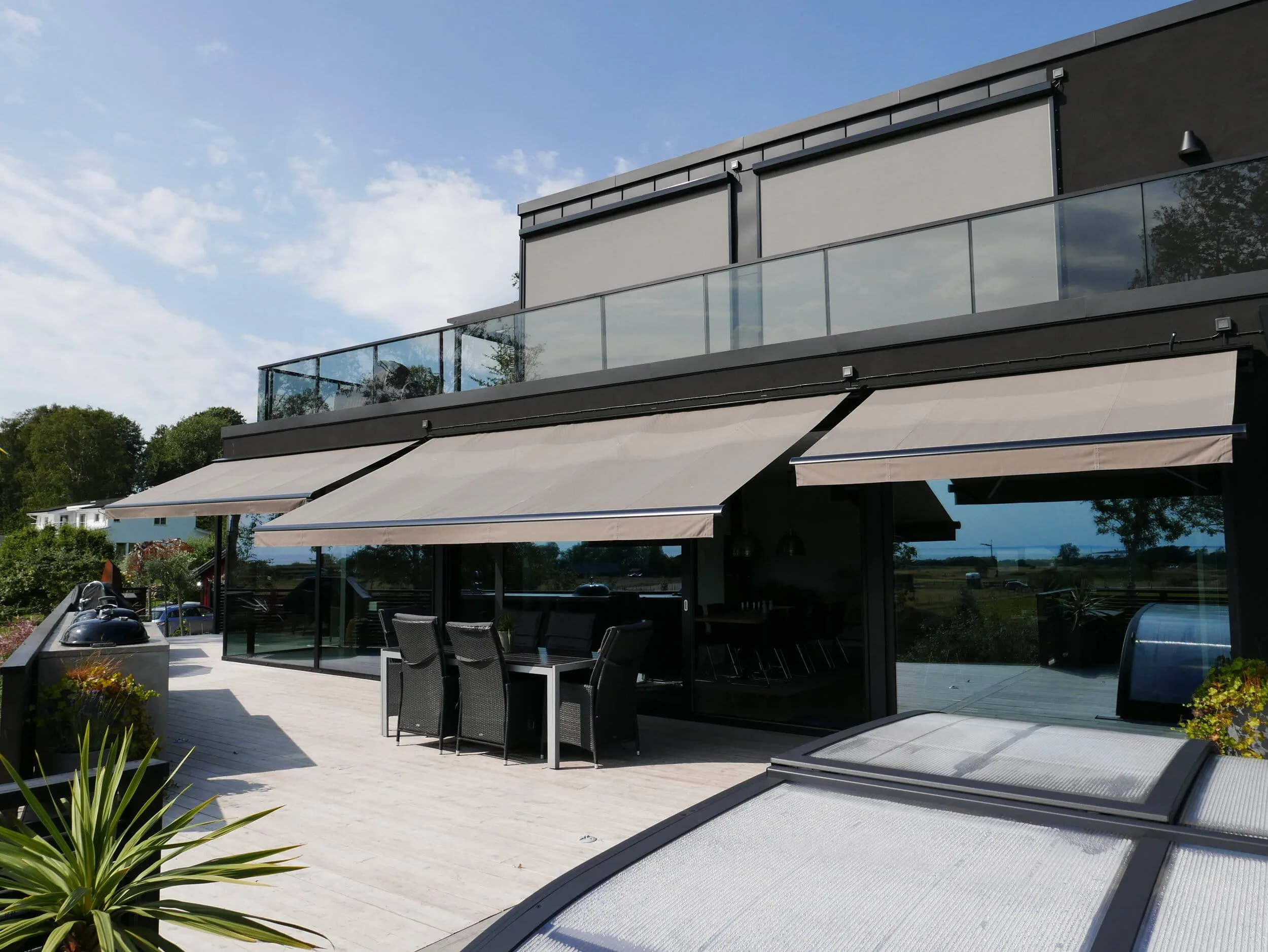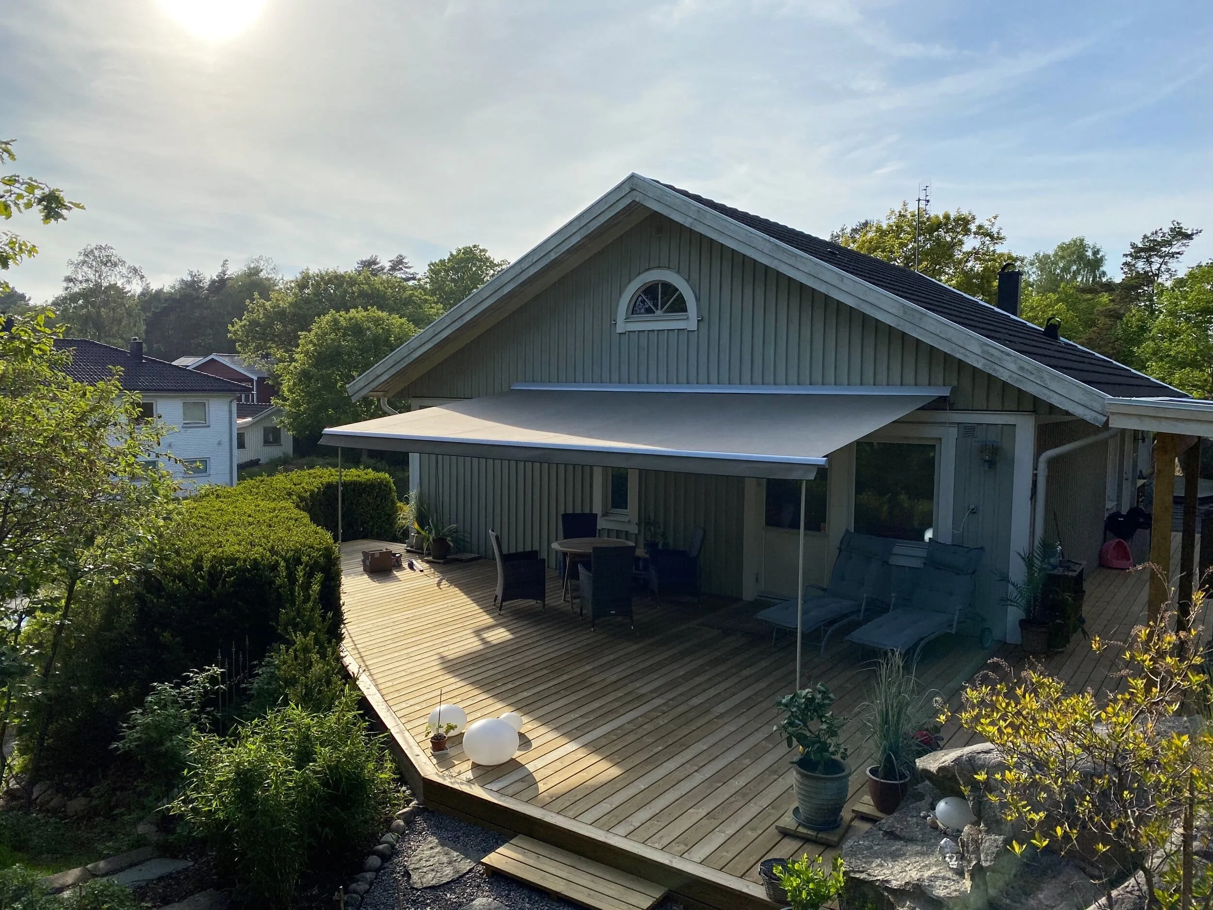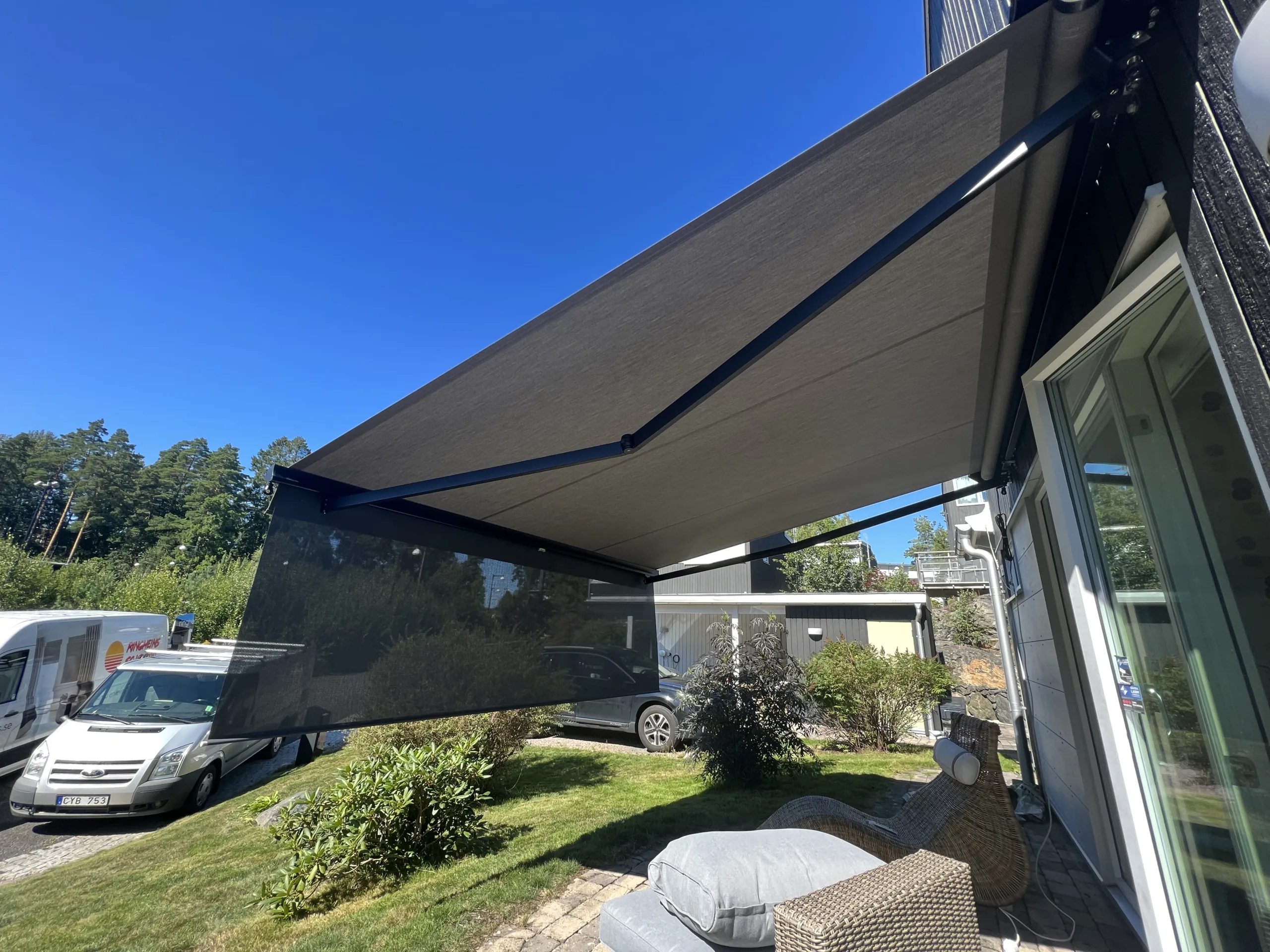 Se hur våra utomhussolskydd ser ut i verkliga miljöer! Vårt galleri erbjuder exempel på hur du kan använda våra lösningar för att maximera både funktion och estetik i din trädgård, på din altan eller balkong.