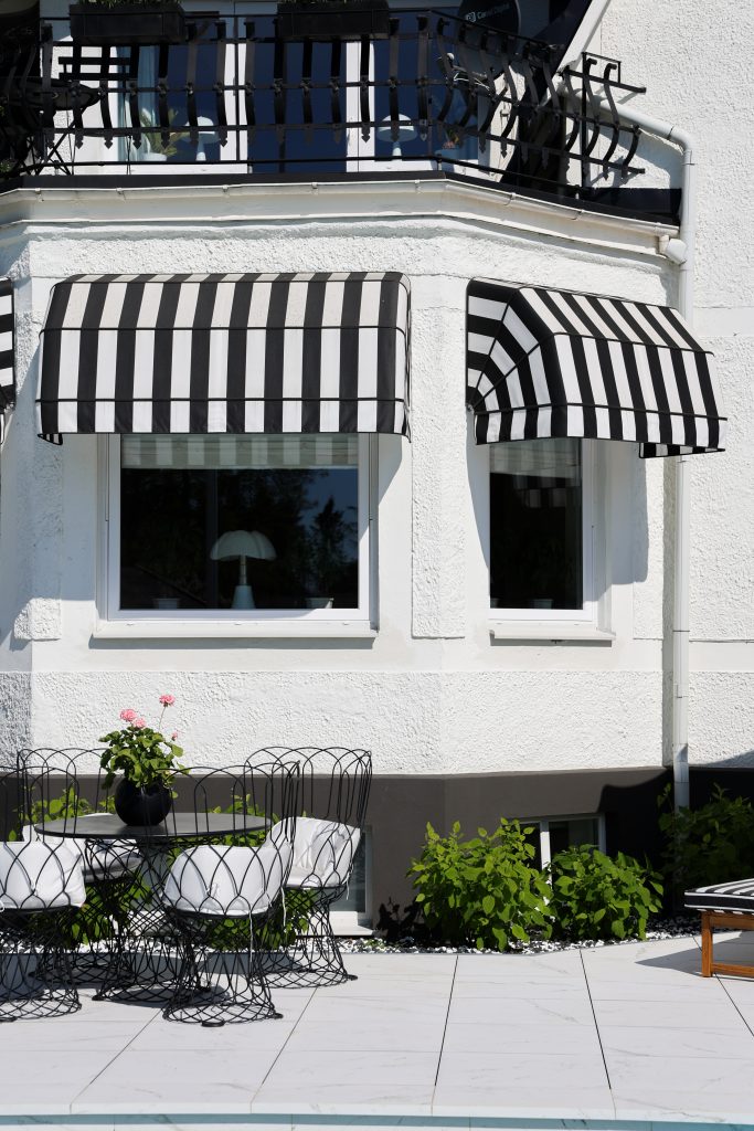 Solskyddet minskar blekning av möbler, gardiner och golv. Samtidigt skyddar det fasaden från väderpåverkan.